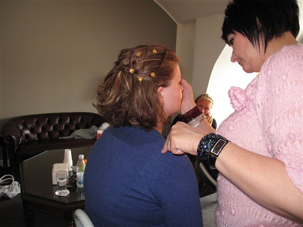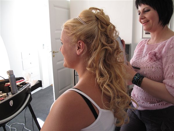 Lørdag morgen startede min mor og mig med lækker morgenmad på Sørup Herregård. Kl. 10 kom stylisten der straks gik i gang med min mor, og derefter min brudepige og så mig. Kl. 15:30 var vi flotte og turen gik til kirken.