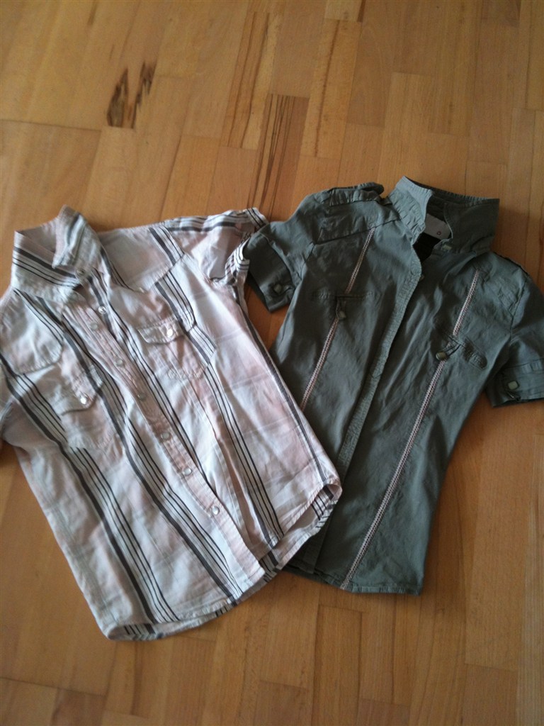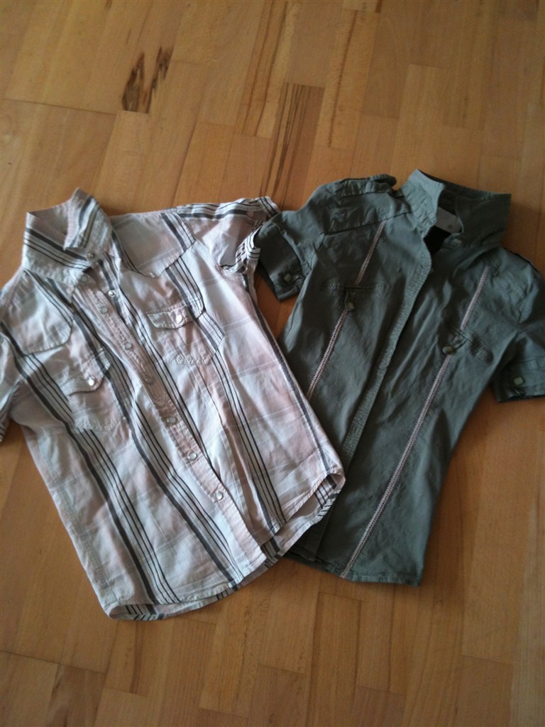 I den ene skjorte står der str. M, og i den anden står der XS, men de svarer begge til XS.