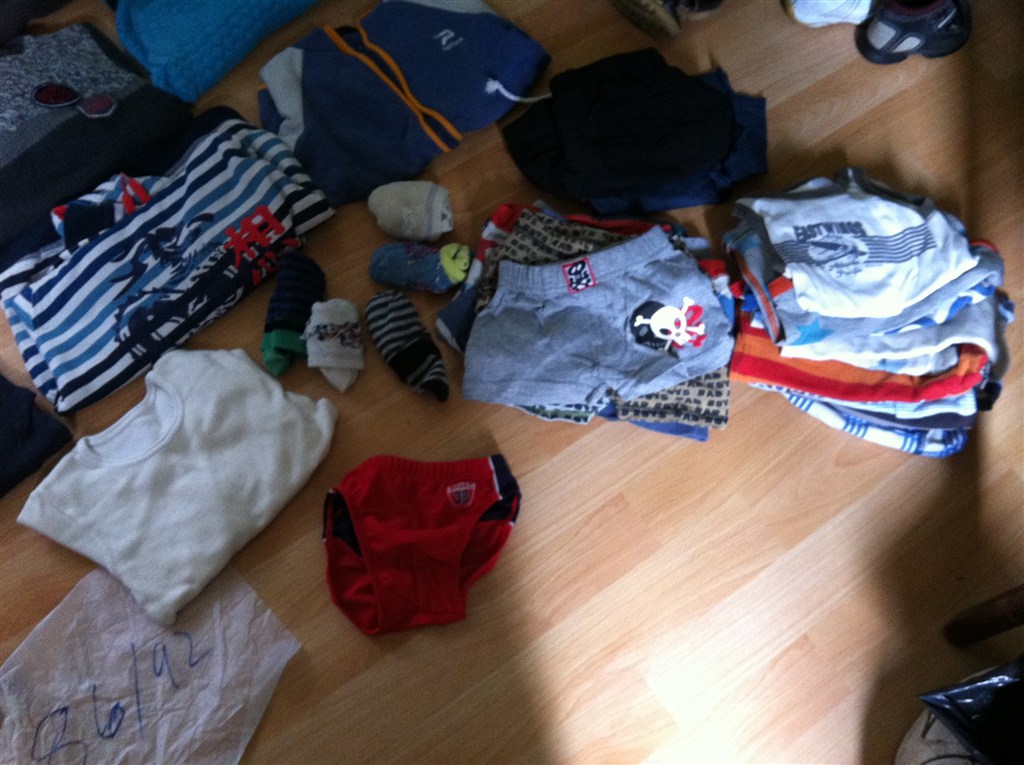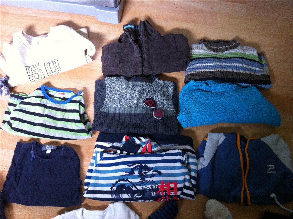 Billede 14+15+16+17 en masse tøj i str 86-92 kun natdragten der er str 98/104. Indholder: 10 langærme bluser. 4 par strømper.1 par badbukser som også er på billede 4. 2 langærme skjorter. 2 par korte bukser. 9 par boxunderbukser. 11 undertrøjer. 1 sæt udbrugt nattøj str 98/104= 41 dele.