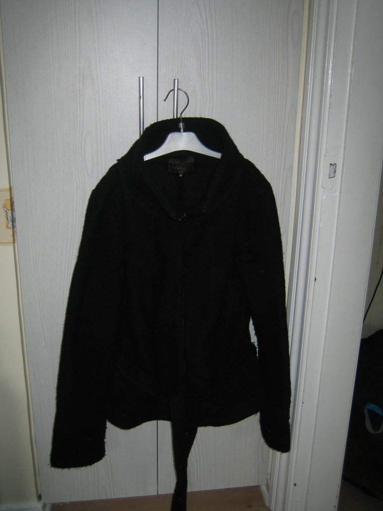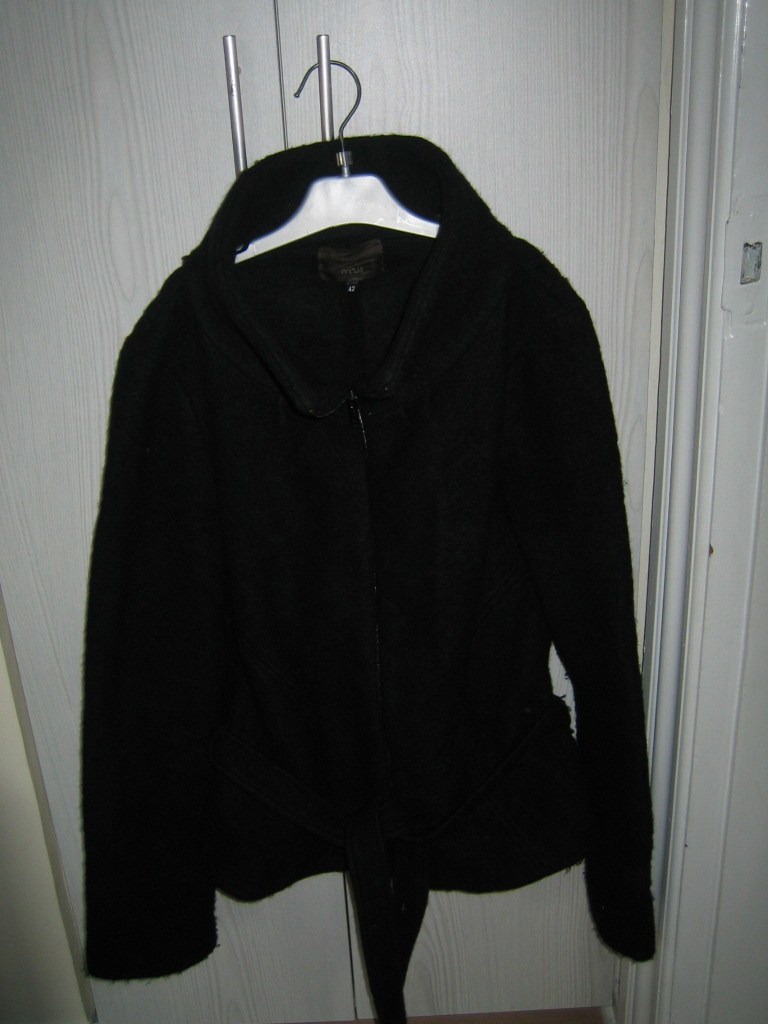 Her sælges en dejlig sort minus jakke lavet af uld tror det er kogt for den er dejlig vamset, det er binder bånd man kan benytte, str hedder 42, men jeg bruger normalt 40, så syntes den svare meget til dette end de 42. Højhals så rigtigt god her til efteråret/vinter priside 200 ink.