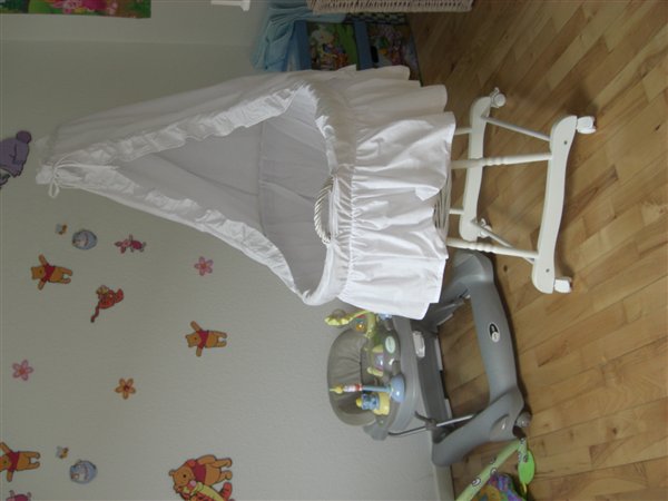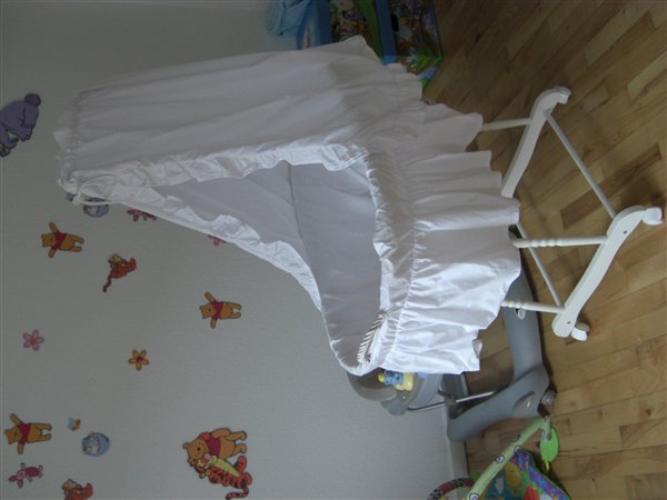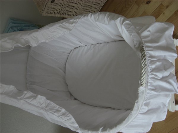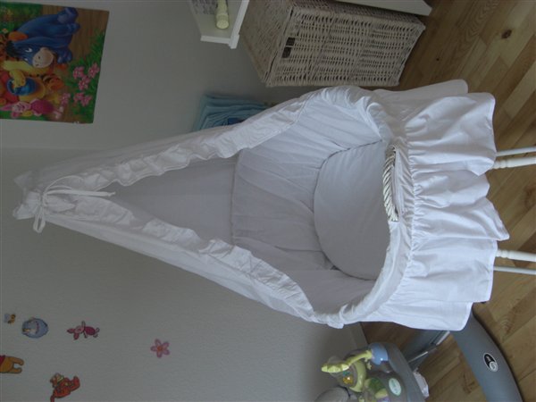 Vuggen har aldrig været brugt, vores søn har sidet i den et par gange, men aldrig sovet i den, så alt er som nyt fra butikken.