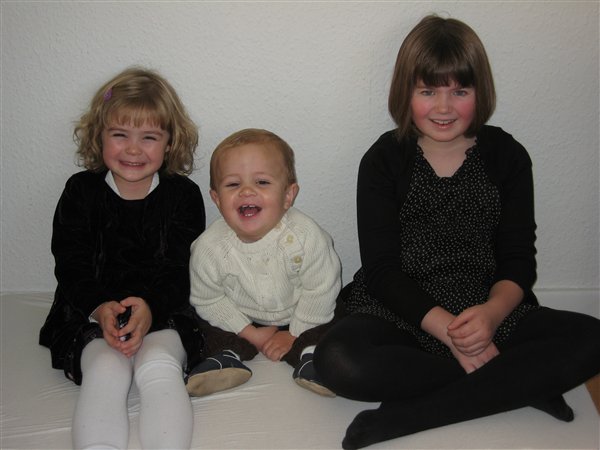 Jeg skulle jo lige have ungerne samlet og snuppe et par fine billeder af dem, sammen, men det endte bare i hat og briller, med tre unger som bare grinede sig selv halvt ihjel, mens moren her bare kunne sidde håbløst og diregere...lol...