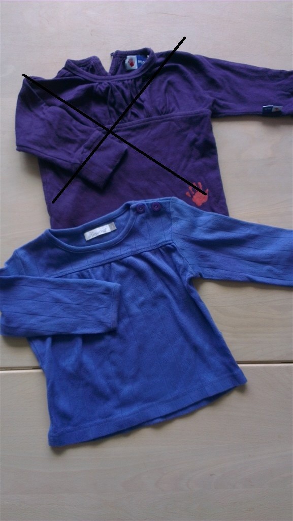 Billede 2: Lilla Molobluse, blå Minymobluse, begge med lange ærmer, Moloblusen har lidt vaskefnuller.