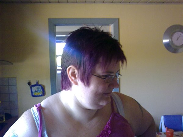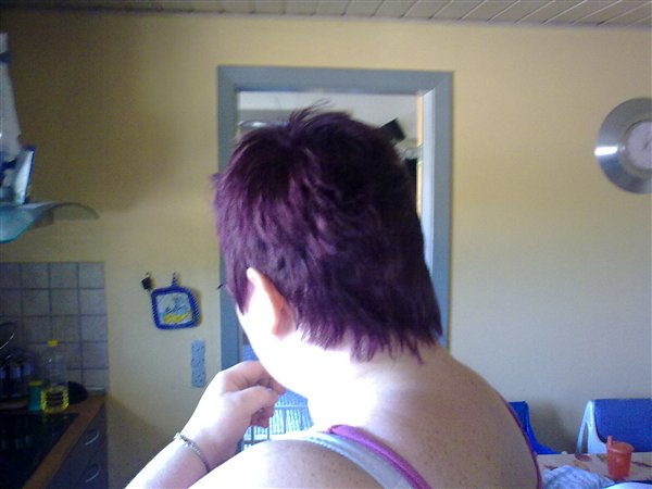 Ja jeg var til frisør i fredags og et eller andet skulle der bare ske, havde ikke regnet med at hårfarven var så lilla, men det ser da ok ud når man lige har vænnet sig til det. Jeg har ellers aldrig fået helfarvet mit hår før, kun fået striber i, så det var noget af et sats.