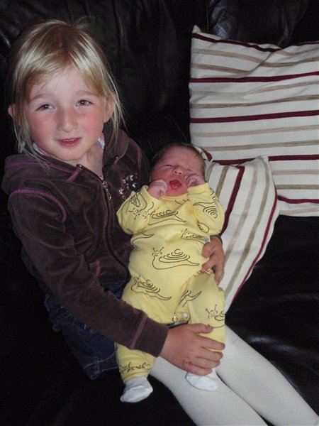 Som sagt fødte jeg sidste søndag endnu en dejlig datter. Julie elsker hende over alt på jorden og vil gerne kysse hende hele tiden.
