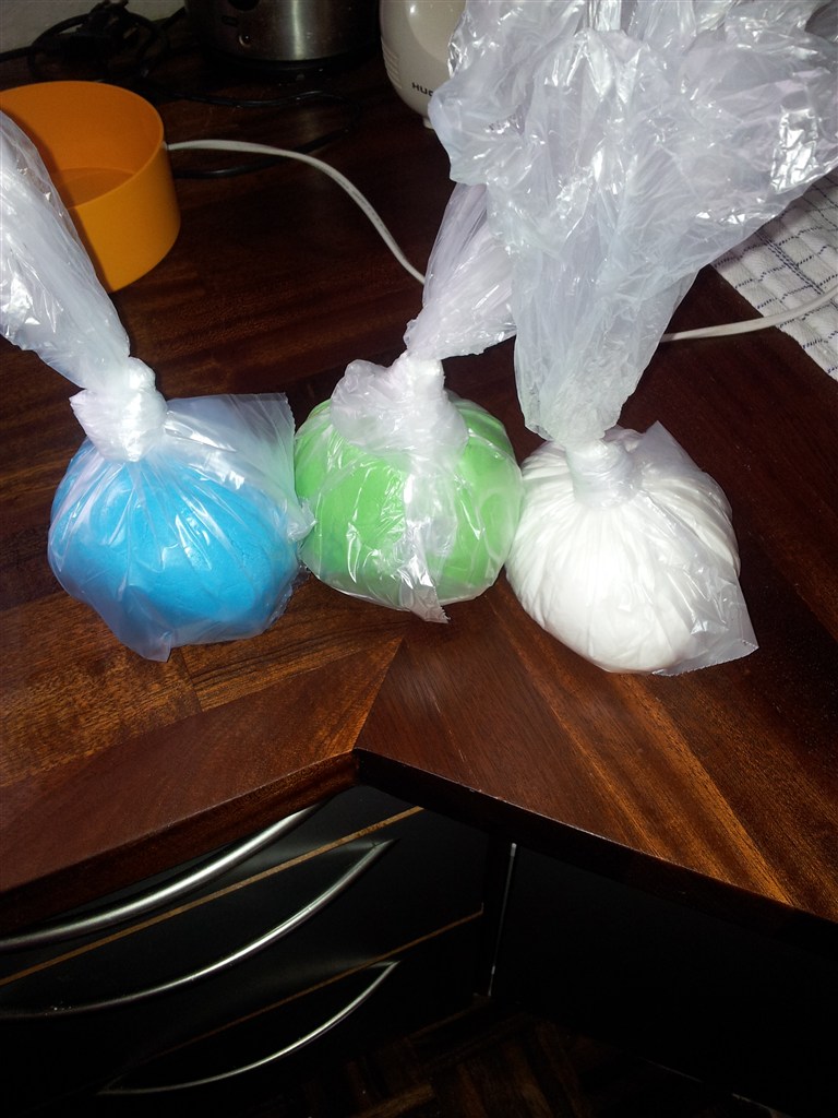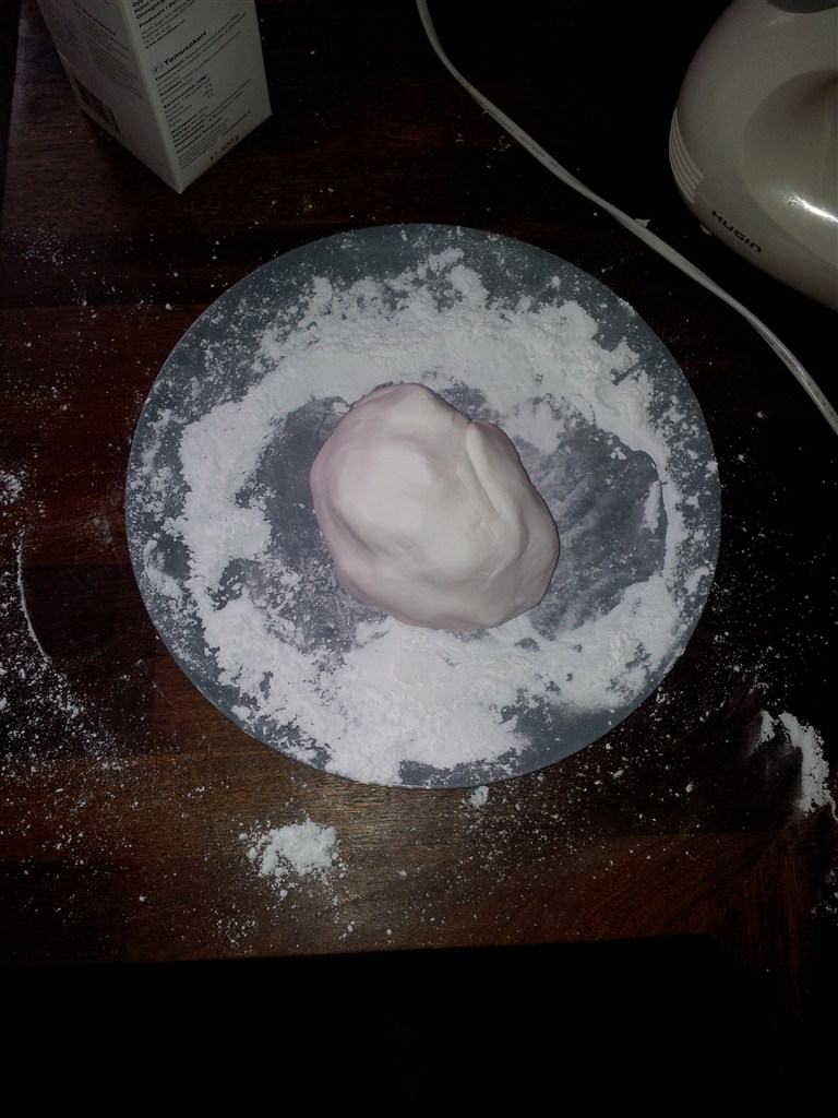 Billede 6: Ælt mere melis i til den har en meddelervoks konsistens. Den må gerne klistre LIDT. Så bliver den bedst.