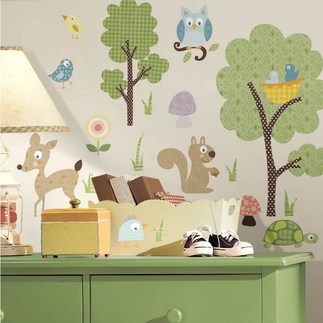 Med skovens dyr. Ses bl. a. her: http://lirumlarumleg.dk/product/Wall-stickers/Wall-stickers-skovens-dyr