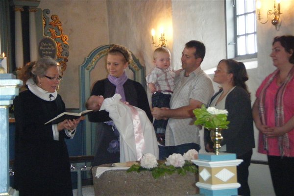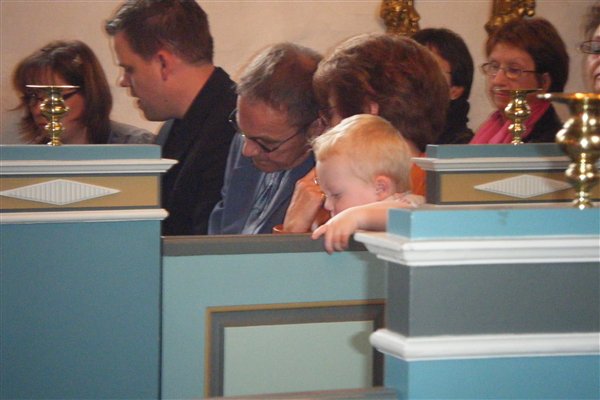 Hun var dejlig stille og rolig i kirken, lidt være var det med storbror, men han klarte det også rigtig flot.