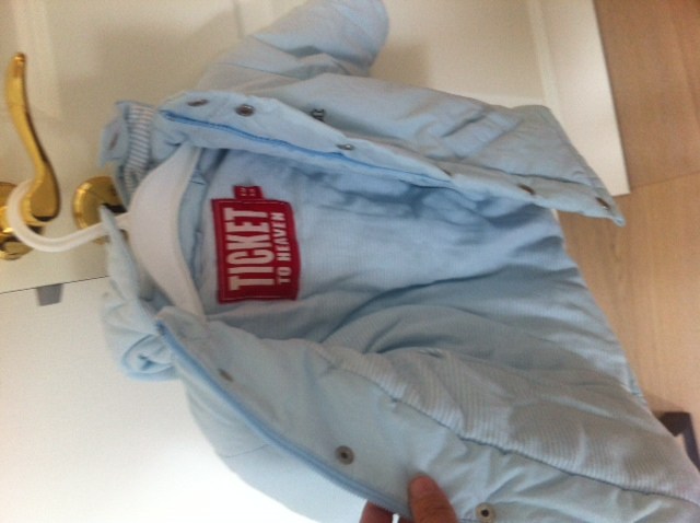 Sød lyseblå dun-jakke fra Ticket to Heaven. Aldrig brugt, da min søn ikke havde brug for den. SÅ fin.