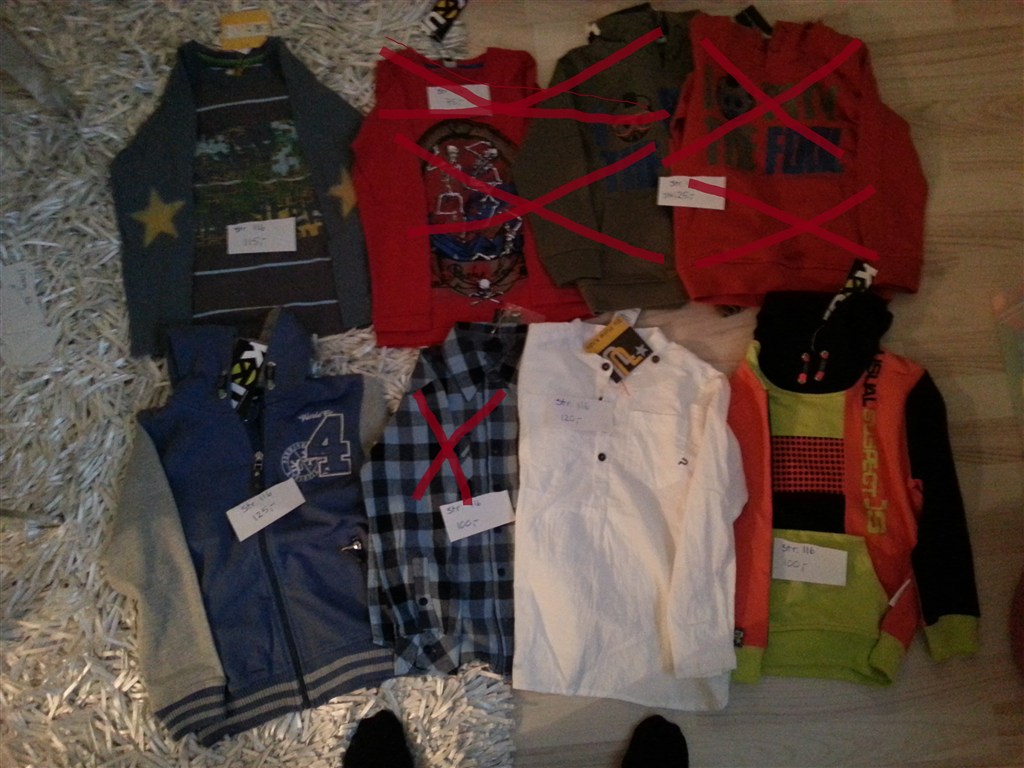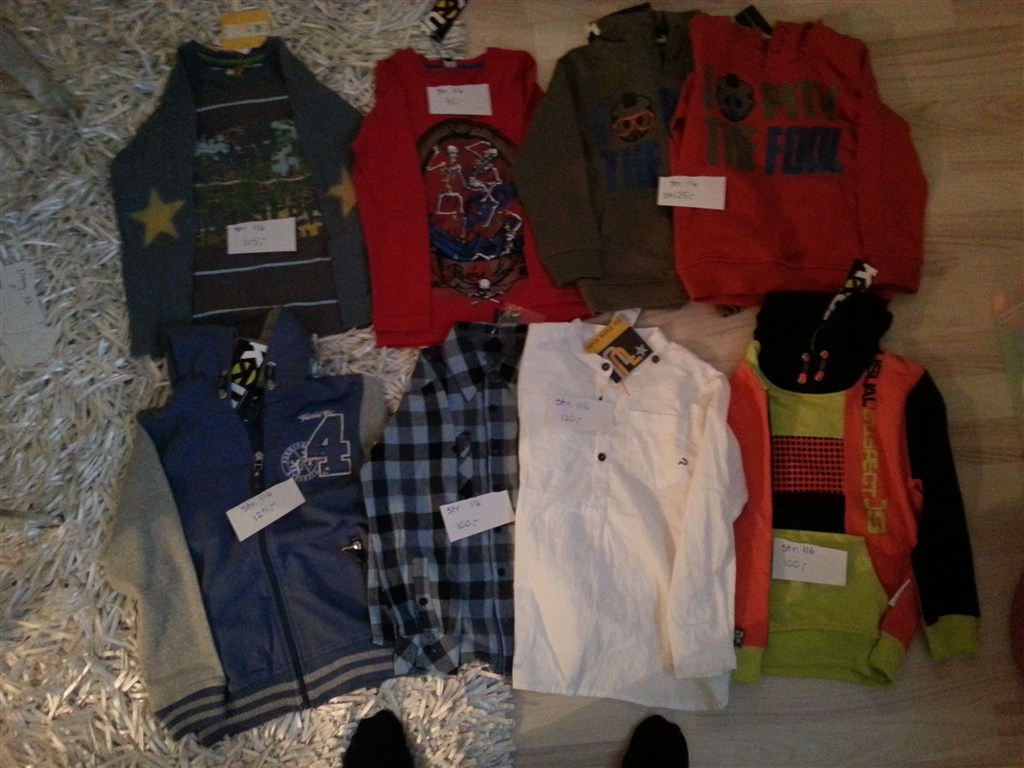 Ja de bukser der er på det første billede er i str 110 og den hvide skjorte har jeg i str 98,104,110