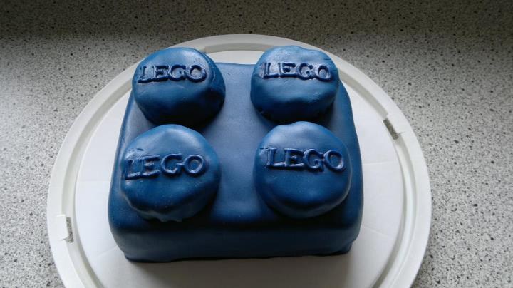 Han er bidt af en gal legoklods så hans fødselsdagskage kunne ik se anderledes ud