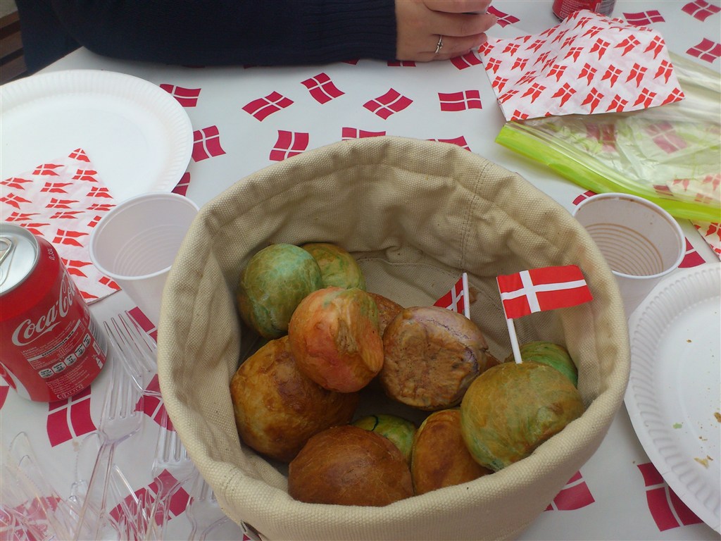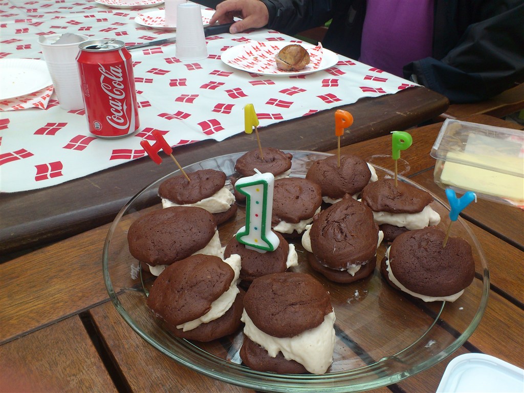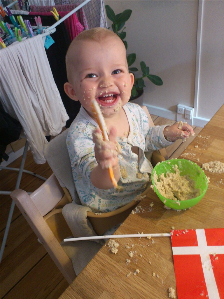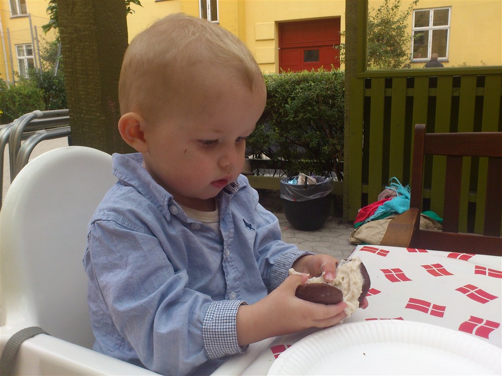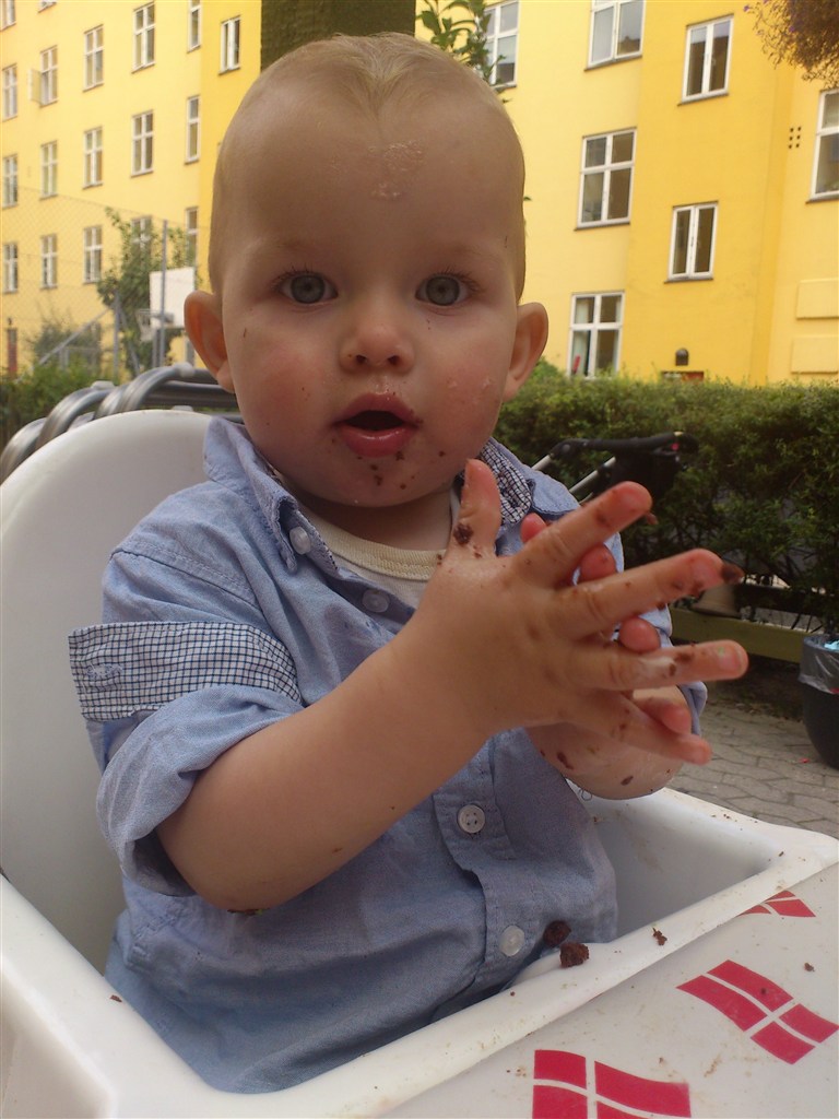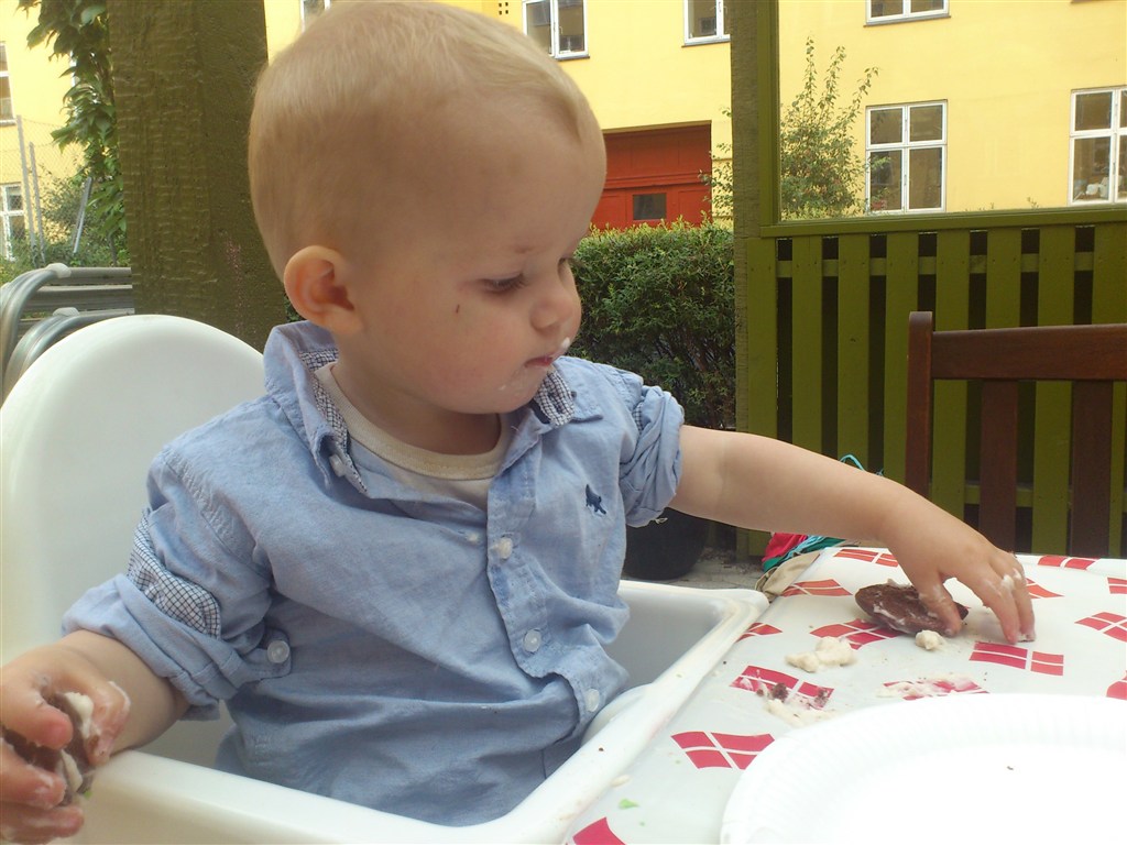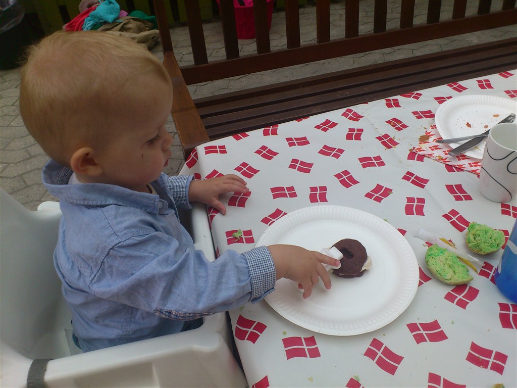 Det var også dagen hvor han fik sin aller første kage! hehe. Meget ambivalent for moar'en, så den blev ikke så stor Og så havde jeg bagt nogle særdeles "giftige" boller Stor succes hos ungerne.