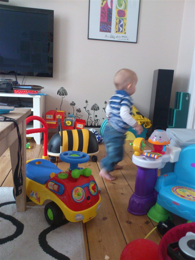 Det var i det hele taget en super vellykket dag (og til sidst et billede af alt hans nye legetøj der står og roder alle vejne .)