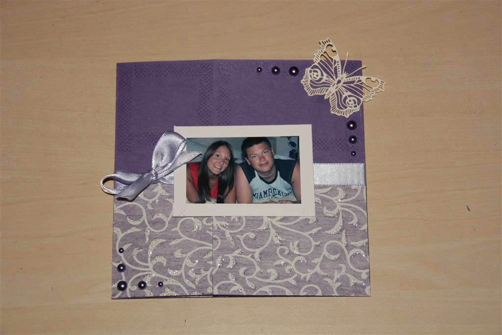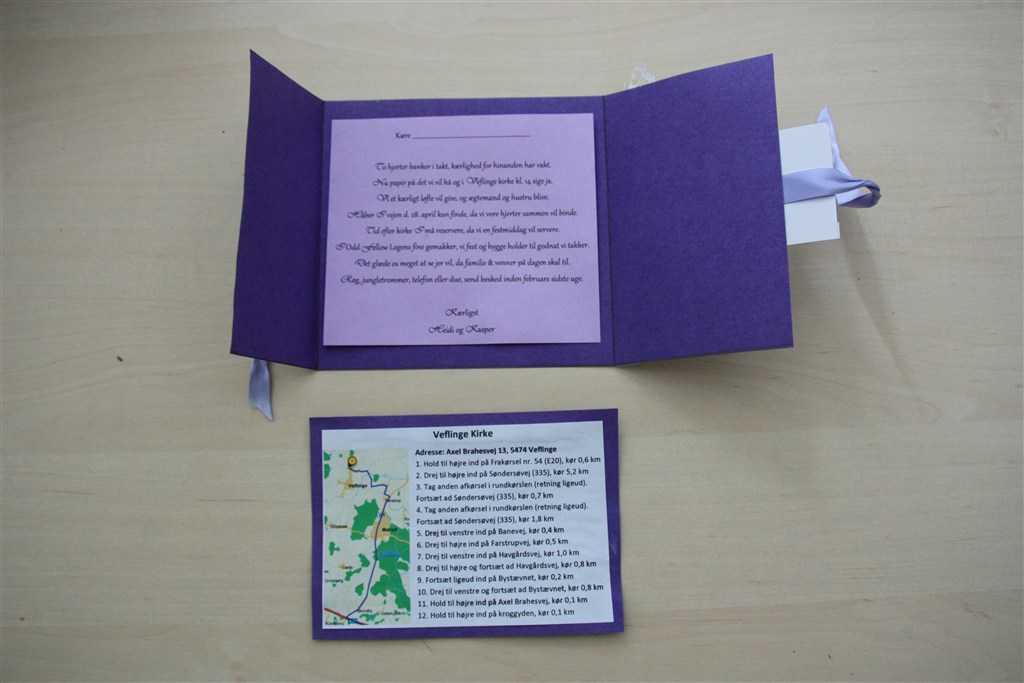 Jeg har desværre ikke et billede, men en veninde af mig havde lavet invitationerne i tykt blankt papir. Selve kortet var firkantet, men på hver side var der i tillæg udskåret siluetten af en siddende kat. Den havde hovedet lidt på siden og poterne på skrå ned foran kroppen. Når så begge kattene blev brættet ind foran kortet fra hver sin side, mødtes de på midten og kombinationen af hovederne og poterne på skrå ned gav indtryk af et hjerte.