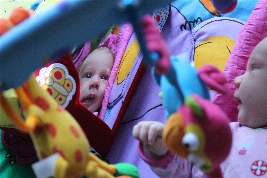 og så lige et par billeder fra i dag på lege tæppet... hun elsker sit spejl