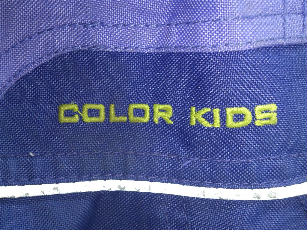 jeg har denne flyverdragt fra colourkids i str 2 (92-98). Det er svært at se på billederne men, den er lilla i en lys og mørk nuance, med limegrøn skrift og limegrønt mærke. den er købt i slutningen af sidste vinter sæson og er derfor ikke brugt meget. den fremstår rigtig pæn, og ikke noget synligt slidtage. det eneste der er med den, er at elastikken til under forden er ret slidt, men den kan skiftes. Der står ikke navn i dragten. Aldrig vasket med skyllemiddel og har heller aldrig været i tørretumbler.