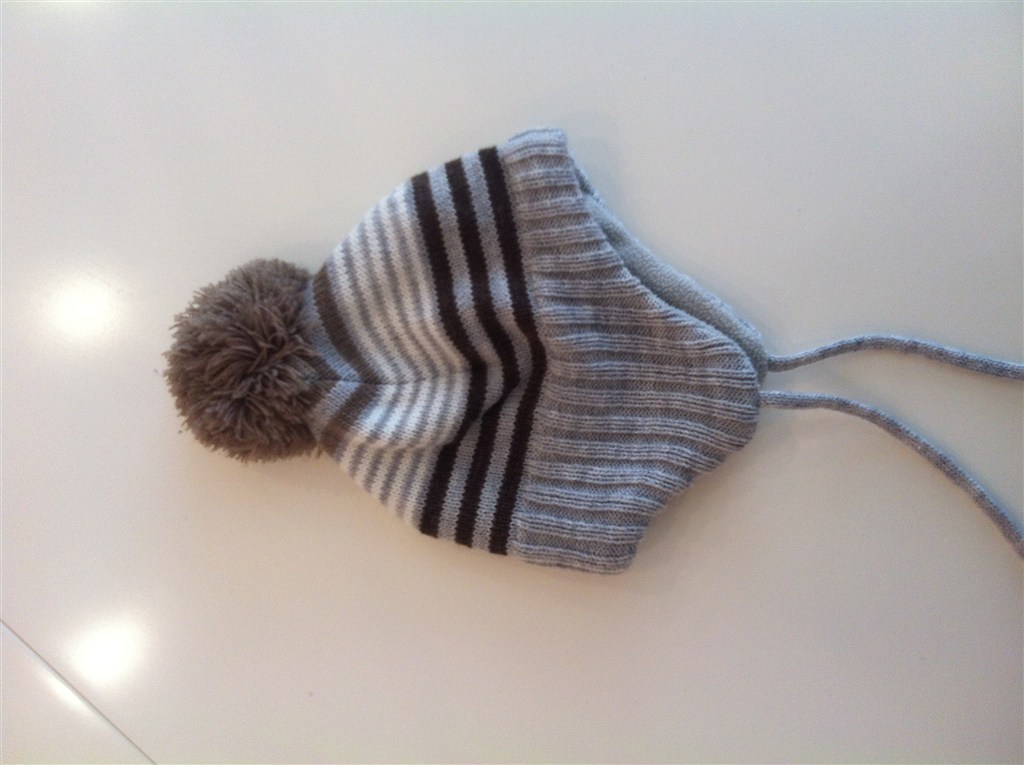 Billede 3: Joha uld/bomuld elefanthue vendbar, koksgrå og lysgrå, str. 4-6 mdr. 50 kroner