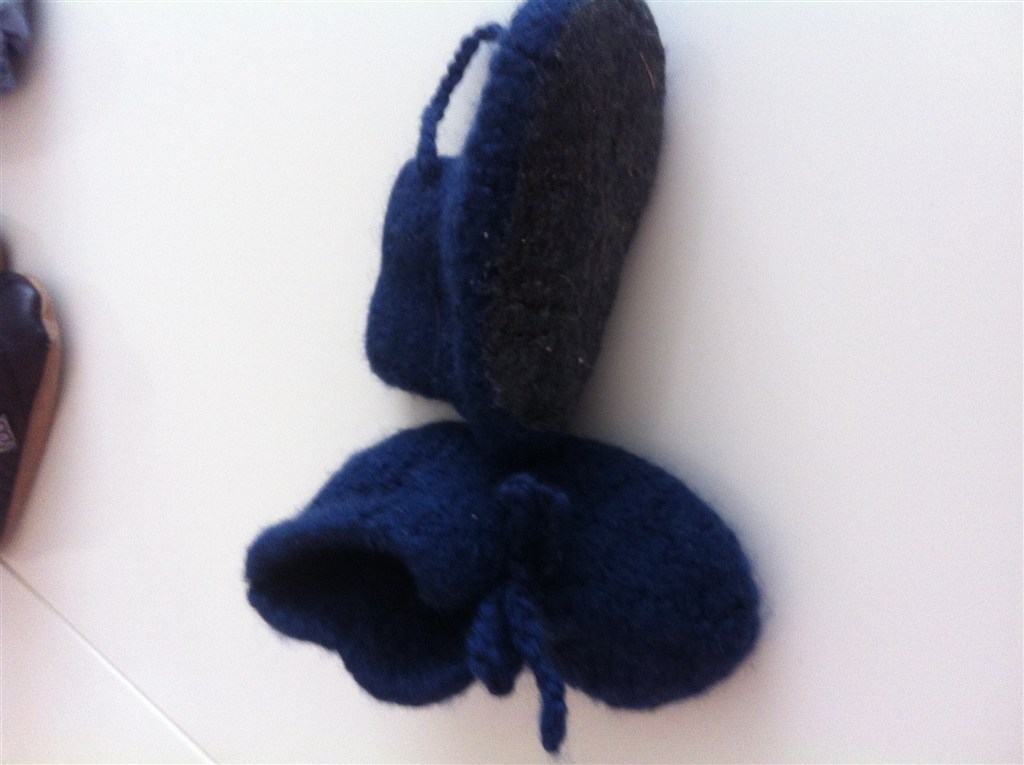 Billede 7: Uld sutsko med skridsikker bund, str. 4-6 mdr. Aldrig brugt. 30 kroner