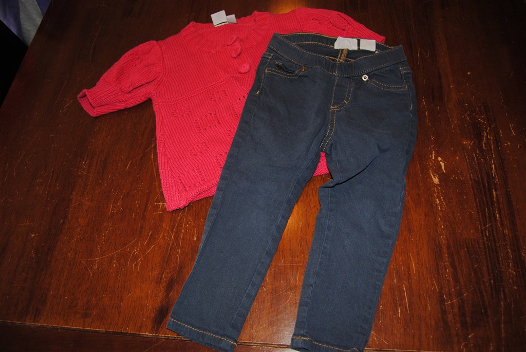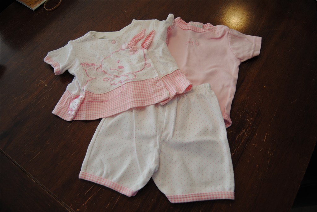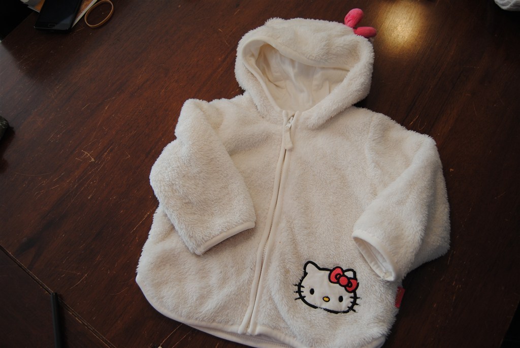 Str. og pris på bamsetrøje med hello kitty og de små hvide sko samt de røde sutsko