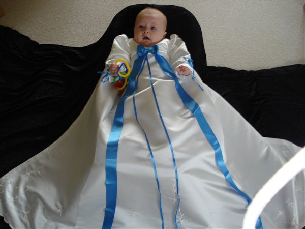 Lucas var så god både i kirken og gennem hele festen han sad og grinte af præsten og til sidst blev hun nød til at grine med det var sgu bare hyggeligt, han sov næsten ikke til festen han havet for travlt med at følge med i det hele