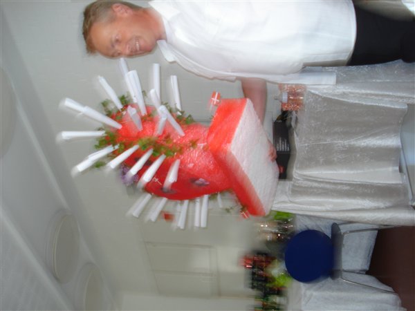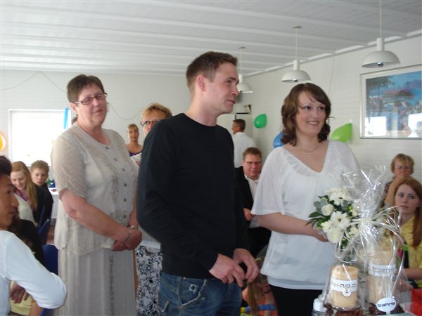 Vi skulle danse brudevals som vi ikke kunne finde ud af vi fik ris over os og lavet sang skulle op på stolene osv og det var jo slet ikke meningen og ja så fik vi samlet 6000 til nye møbler og en masse andre lækre gaver.
