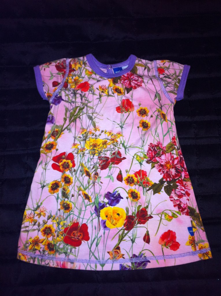 Molo kjolen er en str 74, men brugte den både i str 74 og også i 80, fordi den har korte ærmer.. så kan den bruges længere tid. Dog er den i super fin stand, og max været på 5 gange.