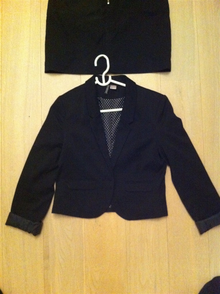 Prinsessen<3 skriver: du har vel ikk en kort sort blazer, den skal gå over hofterne eller en højtaljet sort nederdel