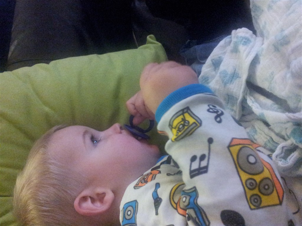I torsdags insisterede jeg så på, at vi alle har brug for, han sover ordentligt igen = falder i søvn når han bliver puttet, sådan ca. Så jeg tog barnevognen med op på hans værelse, puttede ham i den, spændt fast i sele selvfølgelig, og vuggede til han sov; i alt 12 minutter! Hurra mand!!