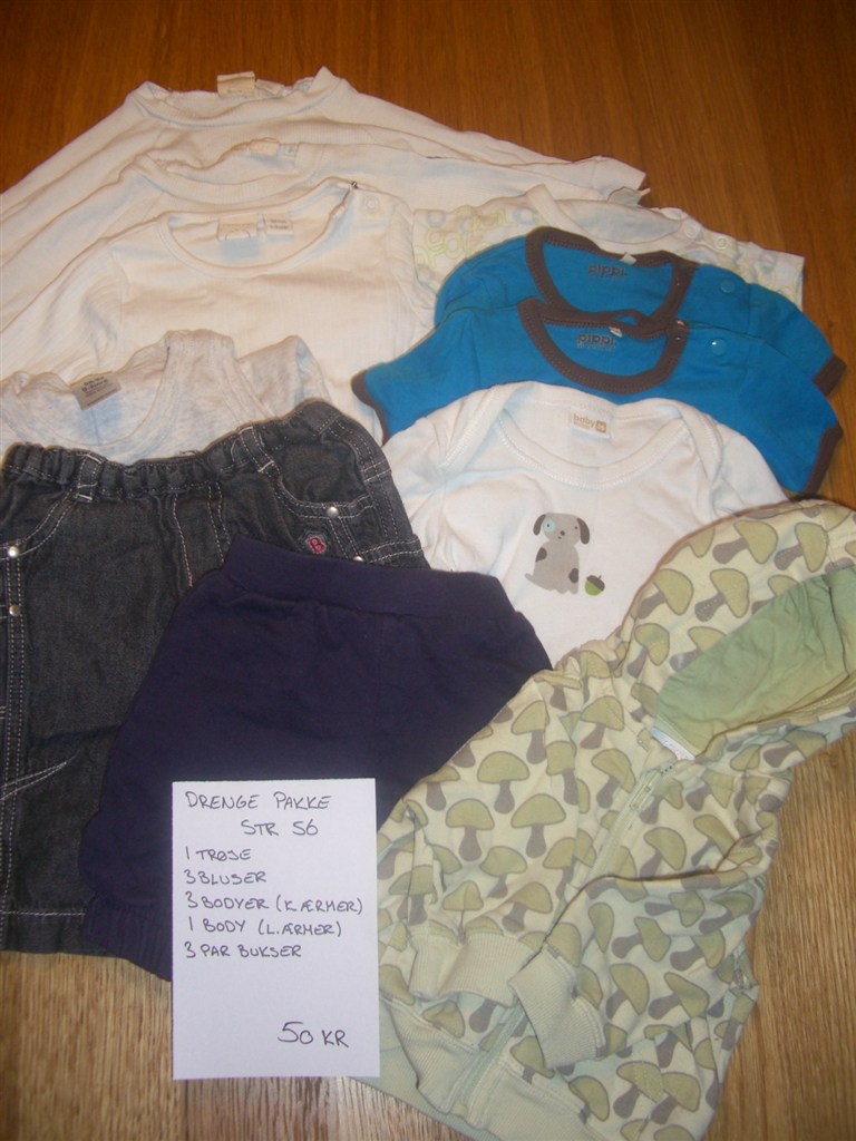Pris og str står på billedene.