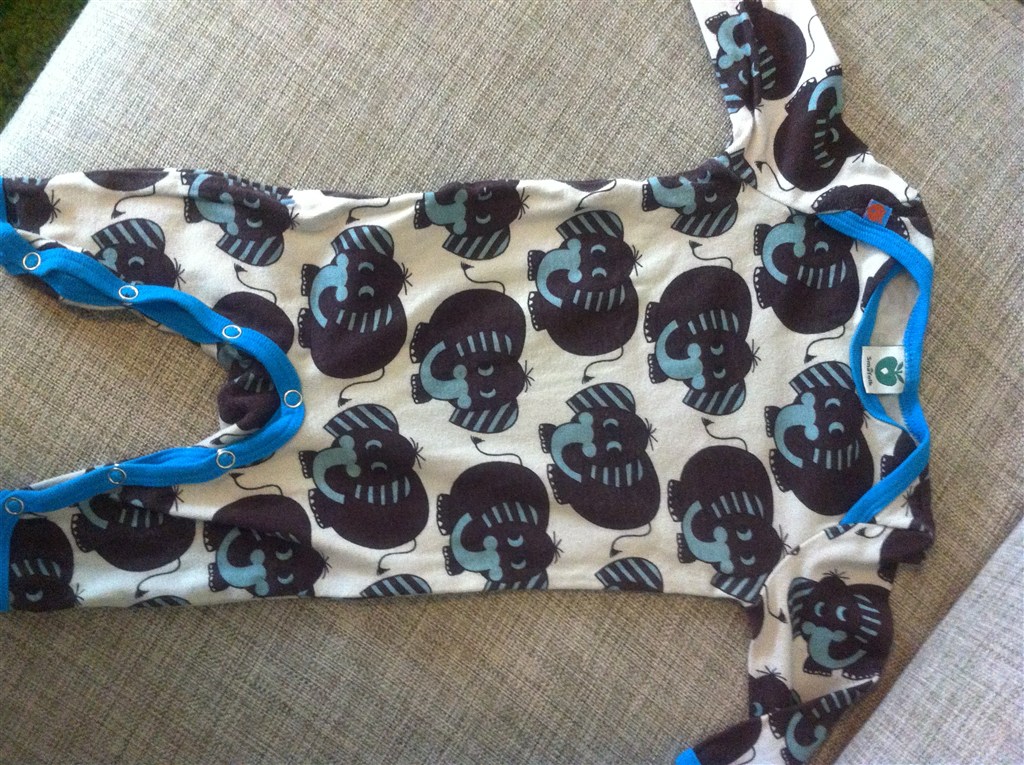 stribet molo body, blå body med elefant og blå body med æble, samt hummelbuks pris og str?