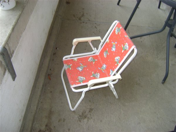 Jeg har en stol som vist på billedet til min datter og naboen vil gerne finde en til sin. Er der nogen der ligger inde, men en sådan sammenklappelig campingstol. Og hvad skal den koste. Vi bor i Randers, men jeg kører tit til Vejen så alle byer langs med motorvejen kan den afhentes i.