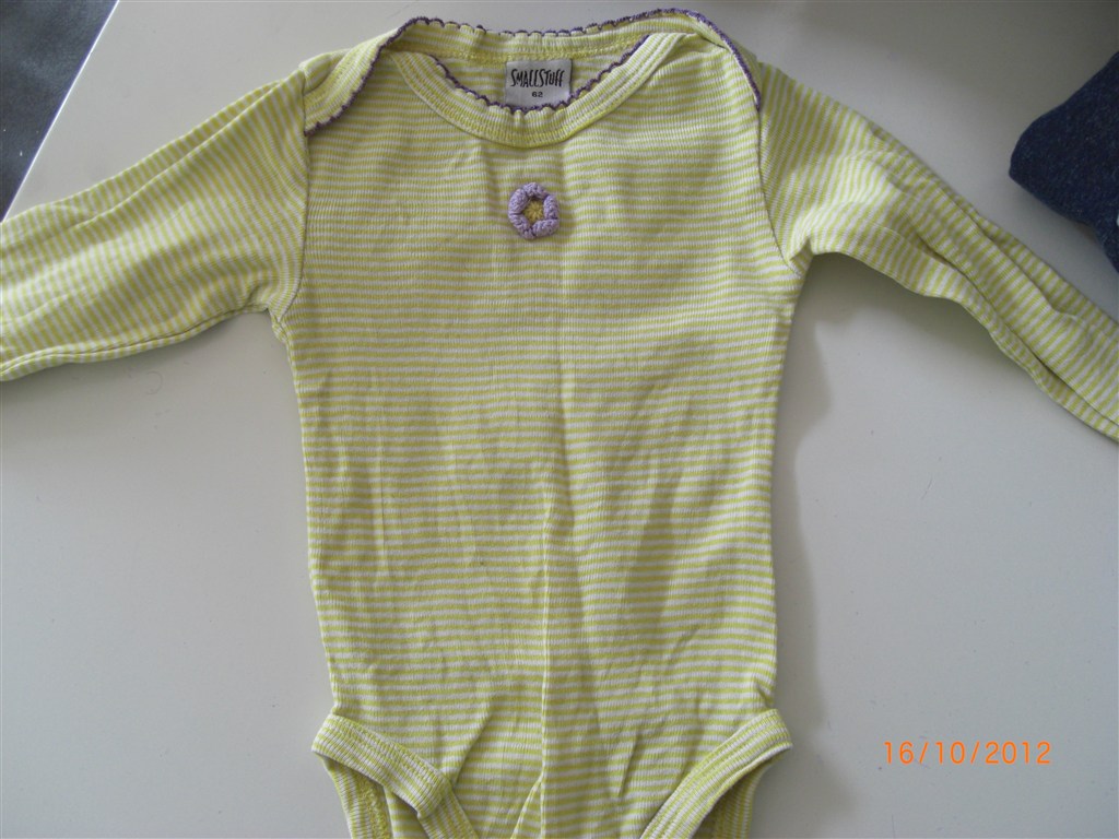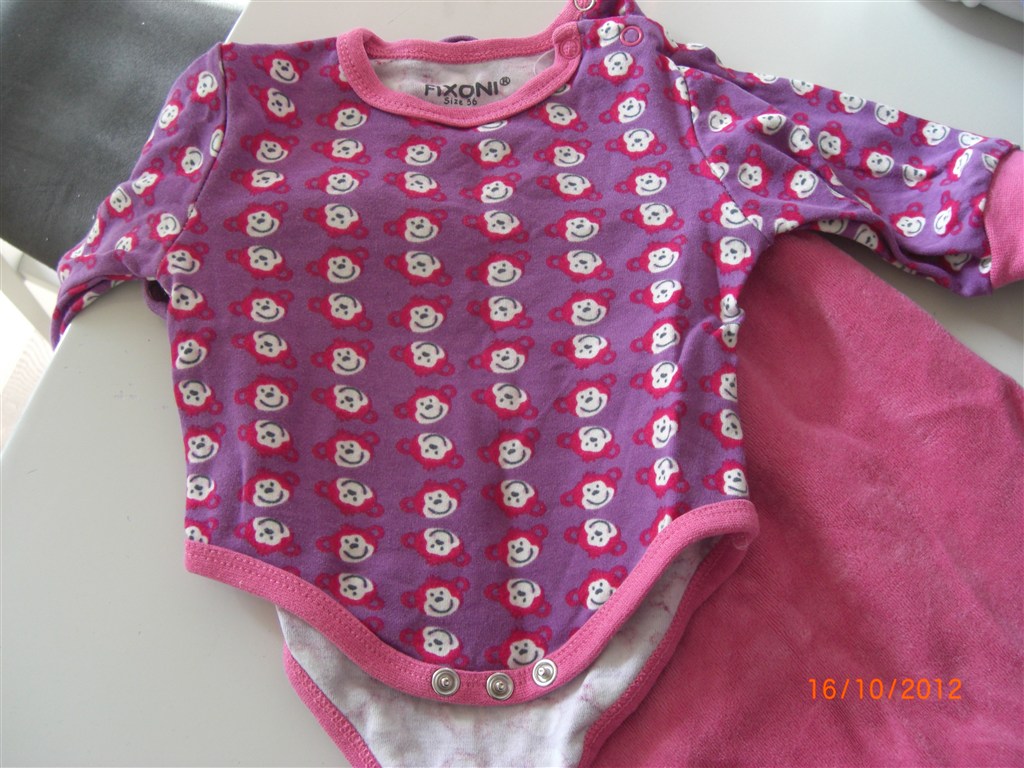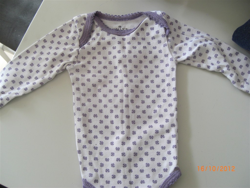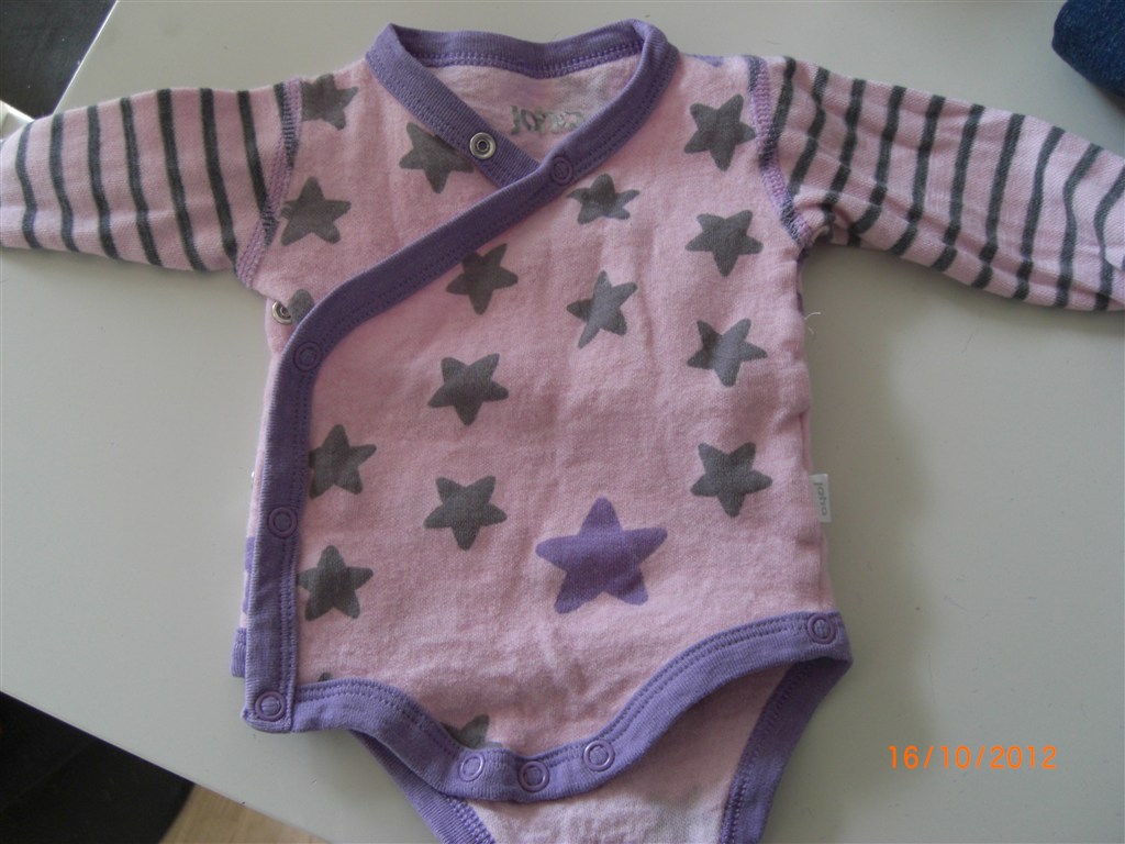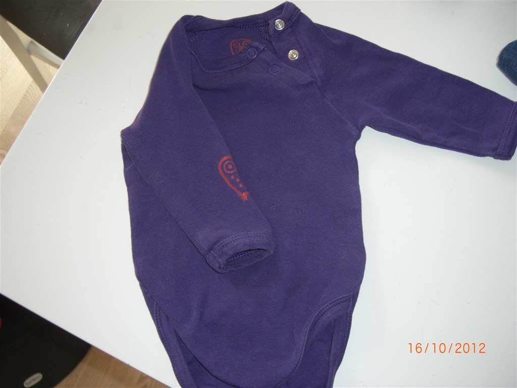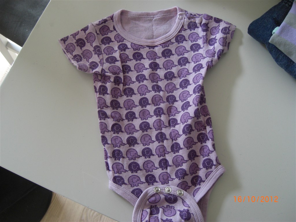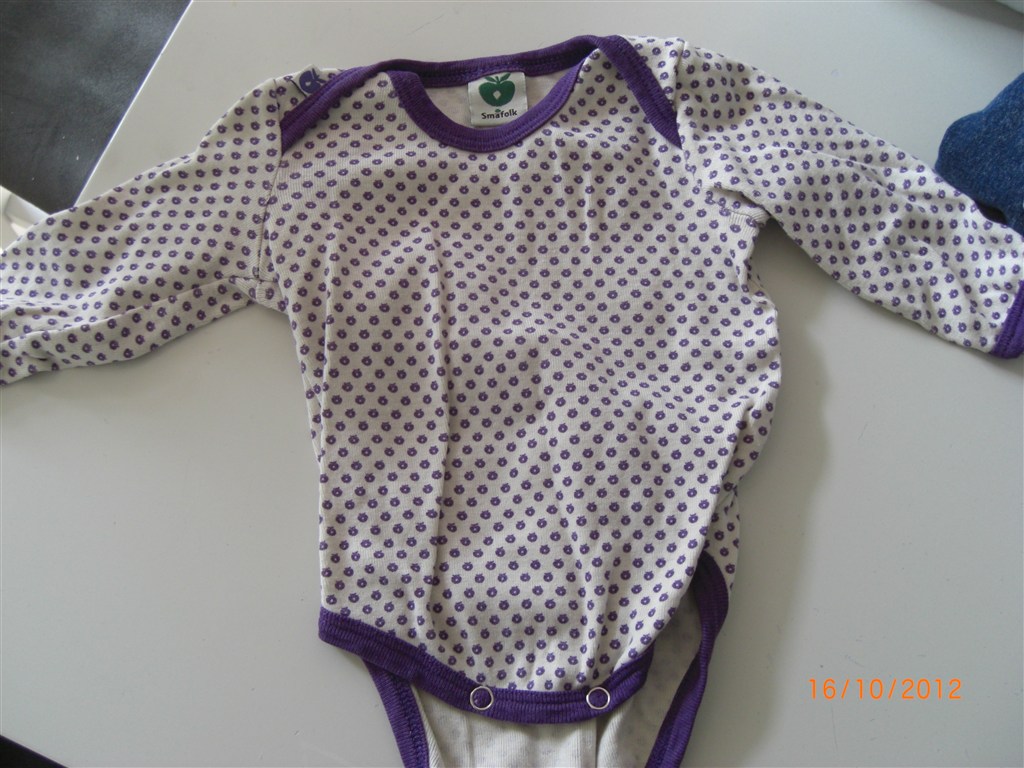 Småfolk body med lilla æbler er str 56