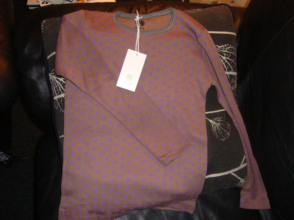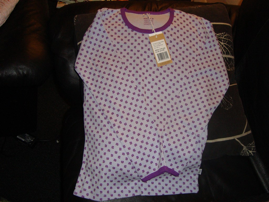 str 128-7-8 år ny Hollys hvid med grå kløver 100.-