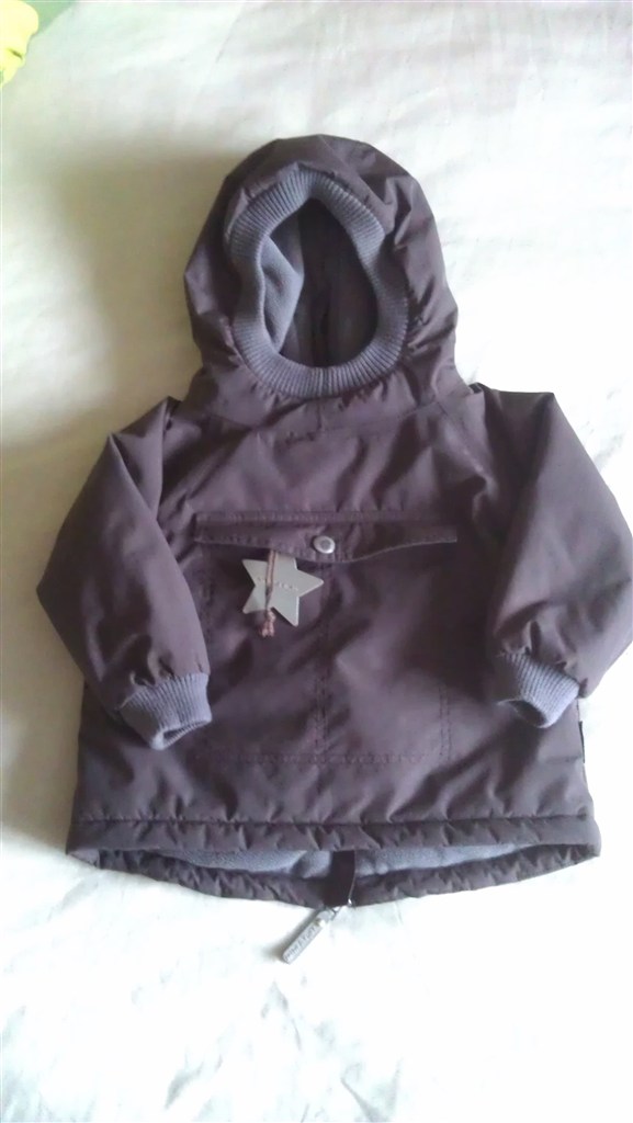 Meget velholdt i str. 86 -uden pletter og huller. Lidt slid på en knap og så står der navn i (med småt).