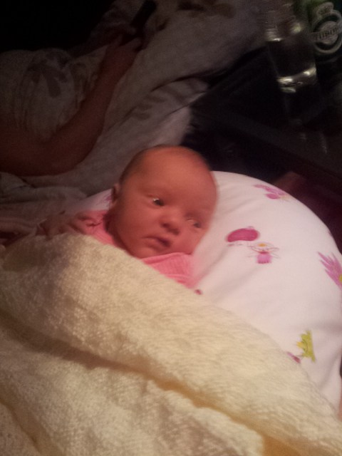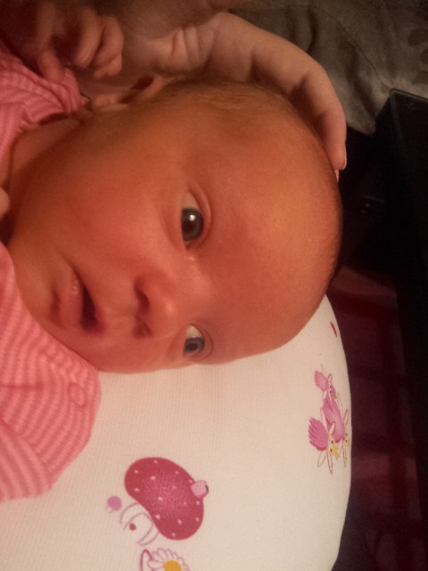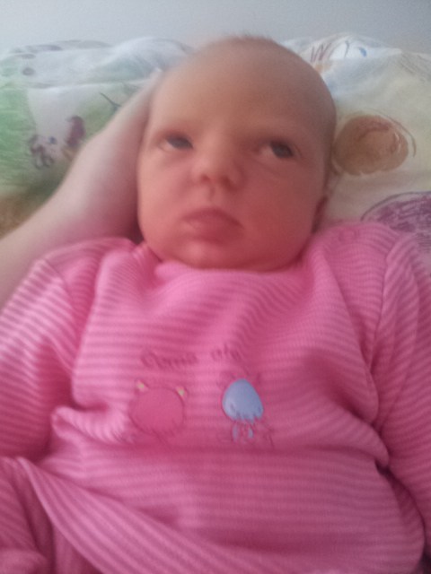 . Lillepigen fik jo en hæftig start på livet måtte suges , ligge med C- pap maske , og få sondemad på børneafdelingen, fordi hun havde navlesnoren om halsen og slugt meget fostervand., og jeg røg til akut operation. Så jeg så slet ikke min lillepige før kl 21 om aftenen og hun blev født 06:03 om morgenen... Må lige tilføje jeg fik mig en grim 2 grads bristnin i mellemkødet 5 cm dyb så jeg flækkede hele vejen ud af fødsels kanalen.. og 2 1 grads bristninger på de indre skamlæber... Avsss!