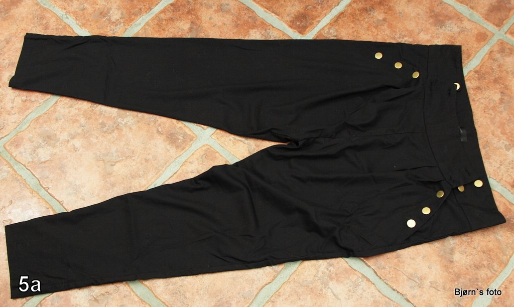 Billede 5. Mrk. Vero Moda, bukser, str. 42, sorte m/guldknapper til lukning i siderne, hængerøv.