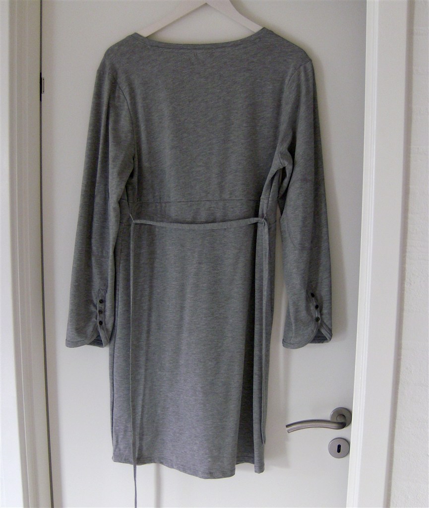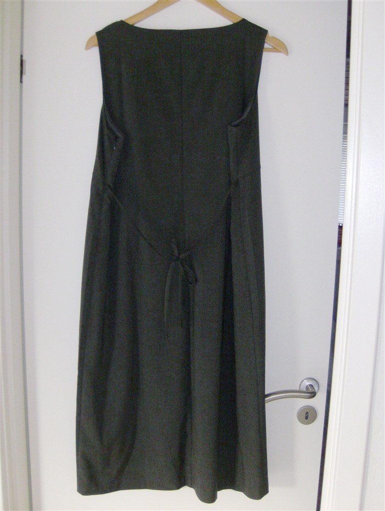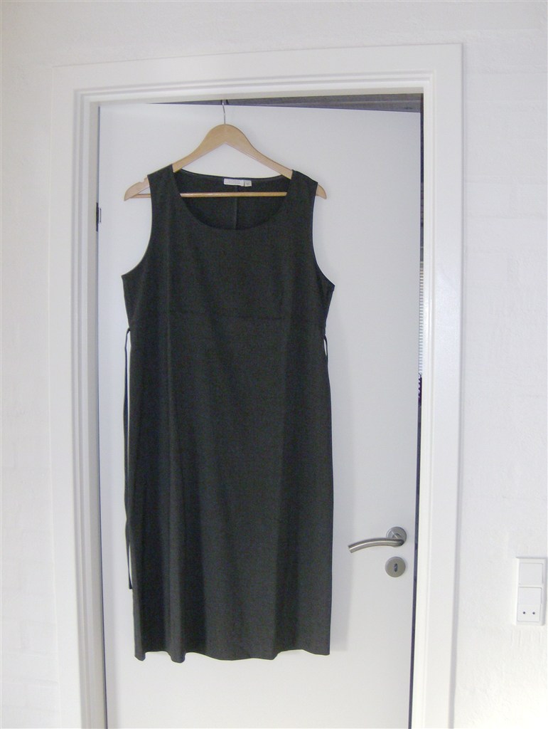 1. Ventekjole fra Valja. Str. M. MEGET stor i størrelsen og svarer minimum til en normal str. XL/44-46. Kjolen er i koksgrå, klassisk snit, uden ærmer og med bindebånd bag på så den gravide mave fremhæves
