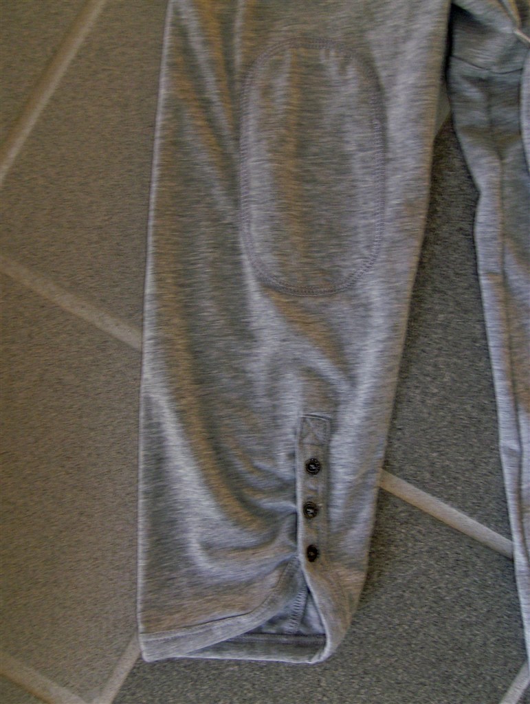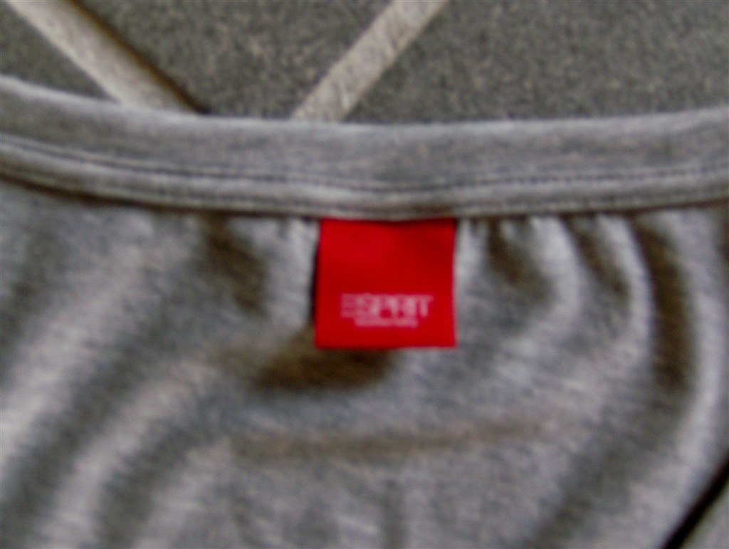 2. Ventekjole fra Esprit. Str. XXL. Gråmeleret og med tværsnit over barmen som giver en god pasform over brystet. Bindebånd bag på så den gravide mave fremhæves. 3/4 lange ærmer med søde delatjer; 'Lapper' på albuerne og ærmet afsluttes med tre små knapper.