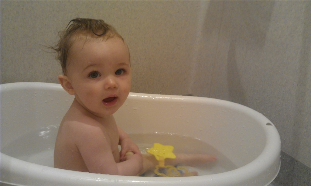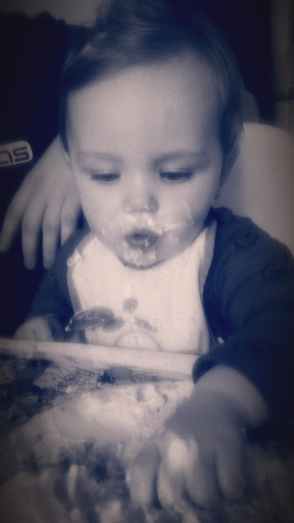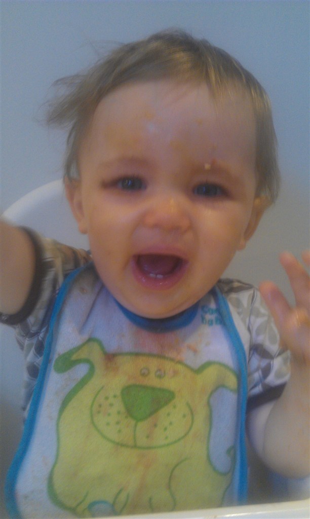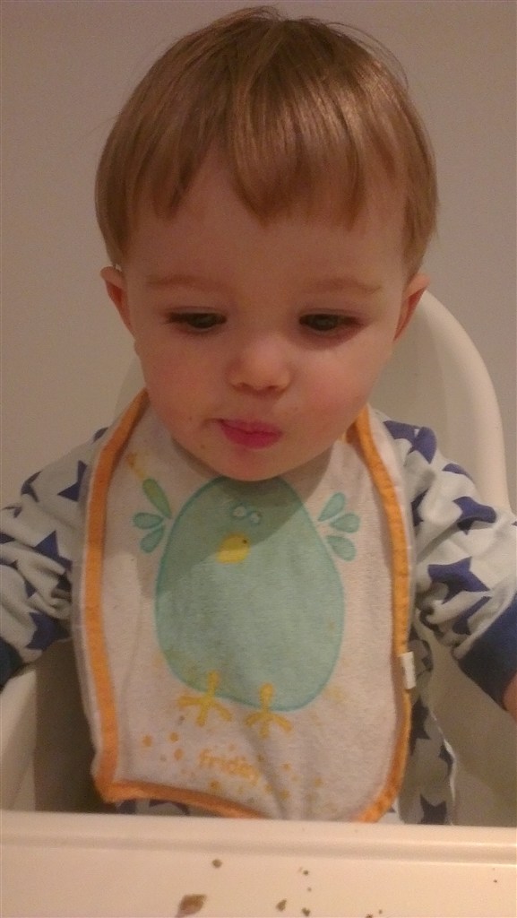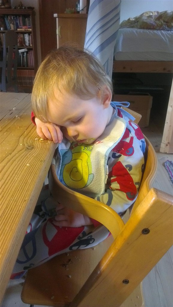 Han kan også selv kravle op på triptrap stolen i vuggestuen, så nu sidder han ude bøjle!