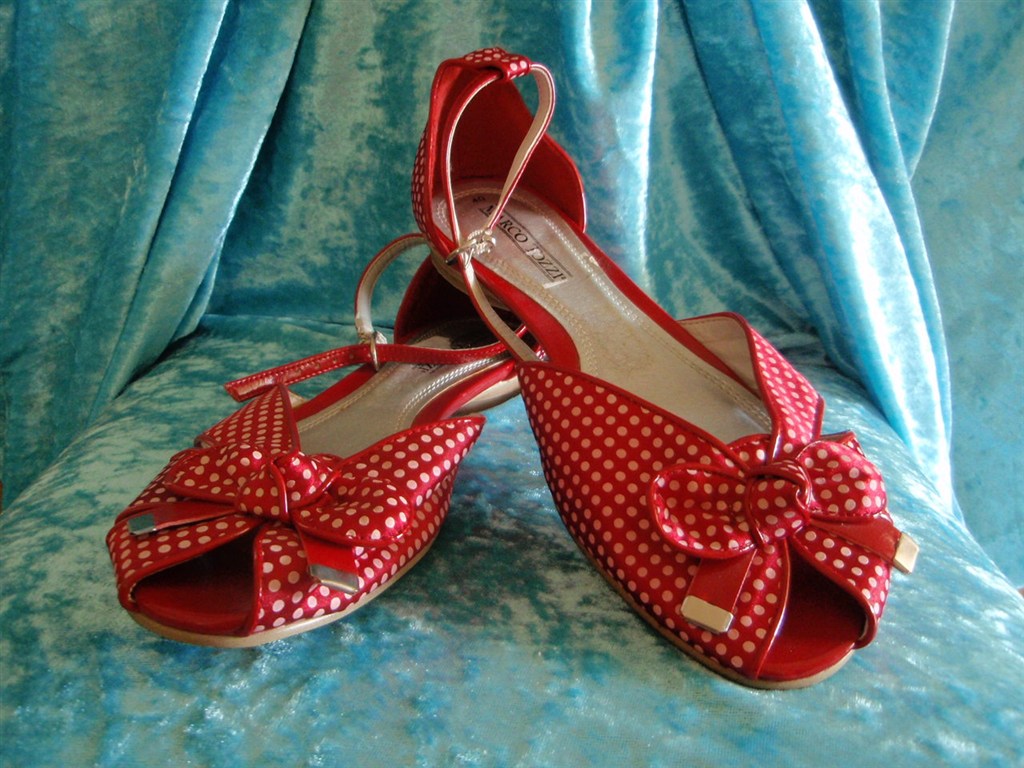 11 Rød og hvide med sløjfer og ankelrem str 40
