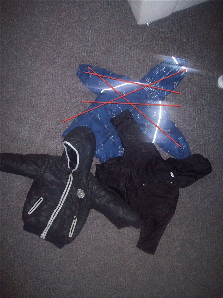 Flyverdragten er brugt , men den er vandtæt og der er ingen huller eller noget .. Blot lidt slidt på knæene ..