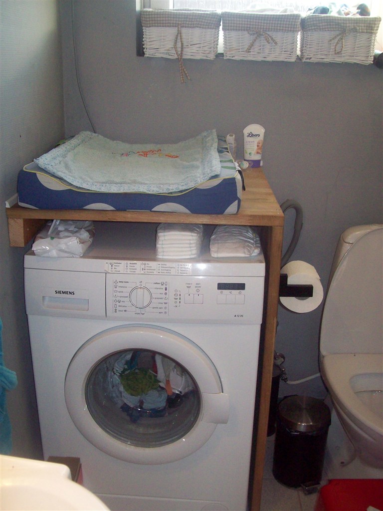 Jeg er gravid i 23. uge og vi er så småt begyndt at gøre lidt forberedelser herhjemme. I den forbindelse skal vi finde ud af hvor vi skal placere puslebordet. Der er umiddelbart to muligheder: vi kan sætte en bordplade op på væggen på badeværelset til en puslepude eller vi kan lægge en puslepude på en stor dyb kommode som står i det der engang bliver babys værelse - lige ved siden af badeværelset... Det ville jo være nemt ikke at skulle til at sætte en bordplade op på badeværelset, men måske er det besværet værd i længden... Hvad ville i gøre..?