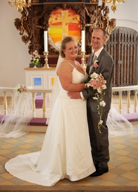 Billedet hvor vi viser ringene er mest for at vise detaljerne fra corsagen og ned på skørtet