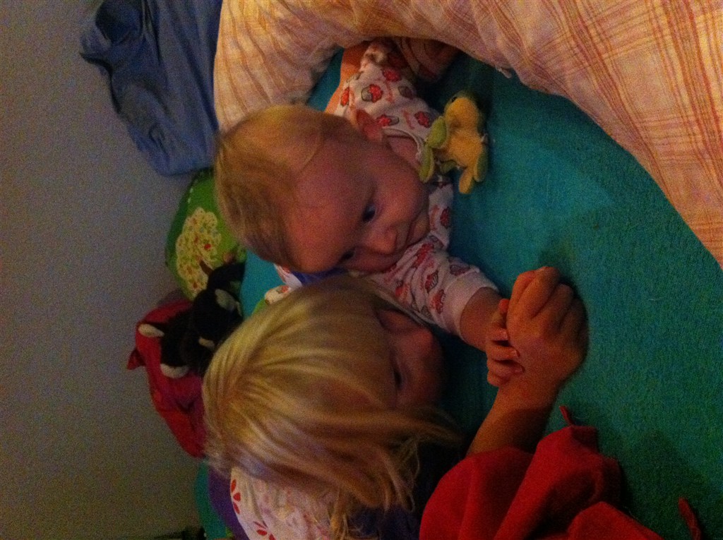 En anden bekendt pige som er yngre møver sig baglæns på maven - det gør Carolina ikke.