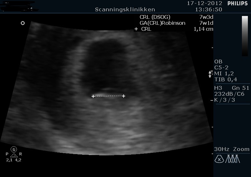 Jeg gik selvfølgelig lidt i panik i morges da der var en meget lille smule blod på papiret, så man kan vel sige held i uheld at vi skulle ind i dag. Heldigvis lå der en fin lille peanut derinde med flot hjerteblink, så det var super dejligt