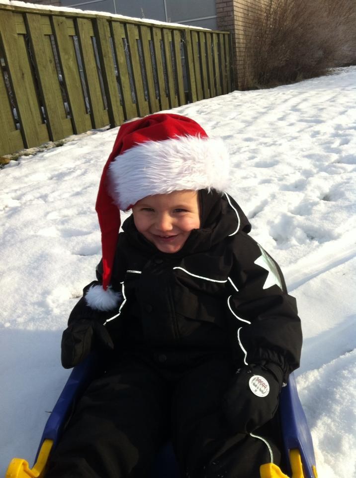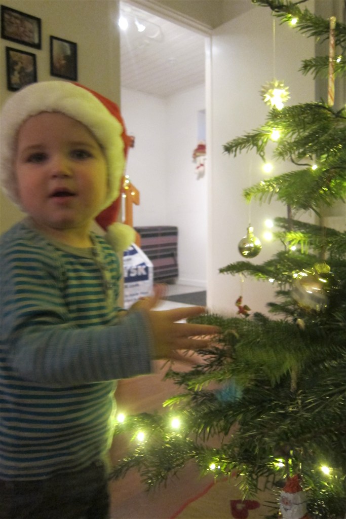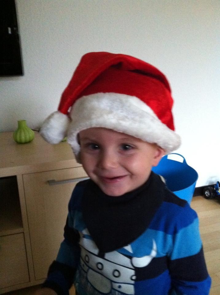 Jeg fik aldrig svaret på den her.. Han er så fin med nissehue på, Noah, Felix vil absolut ikke have sin på, bortset fra meget få, ganske korte øjeblikke, hvor kameraet er så langt væk som muligt....! Så trådte min svigerfar ind af døren, fandt kamera og nissehue (Felix' egen) frem, og vupti, billede af barnet... tsk tsk!