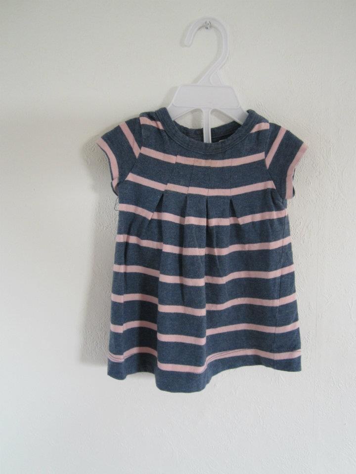 15. billed kjole blå/lyserød stribet. med 2 knapper bag på. i lukning. str 62
