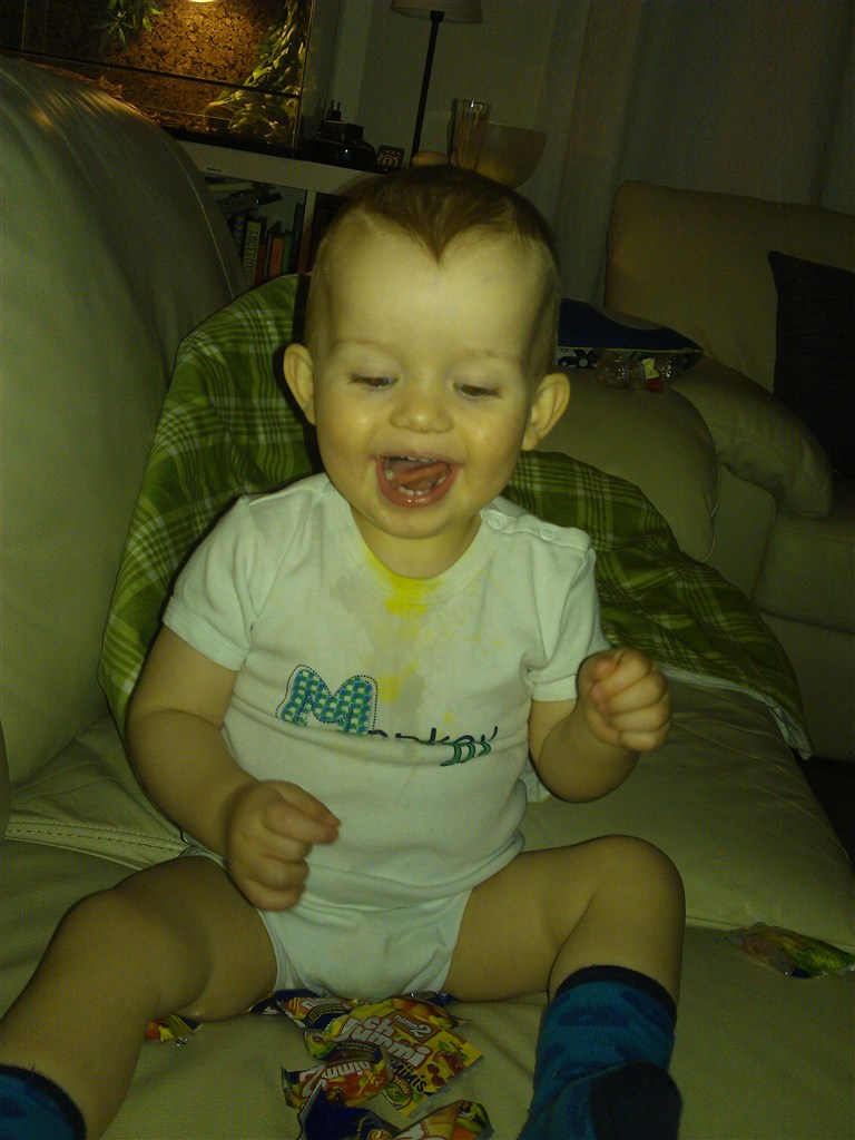 Han har 16 tænder! 16!! Jeg synes virkelig det er gået stærkt på den front. Ved hans 1 års fødselsdag havde han 8 - dem valgte han så lige at fordoble over 2 måneder. Det resulterede også i en del feber og sygedage