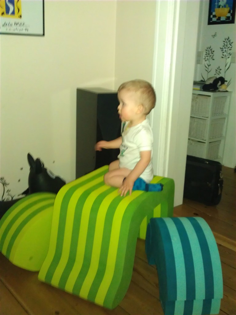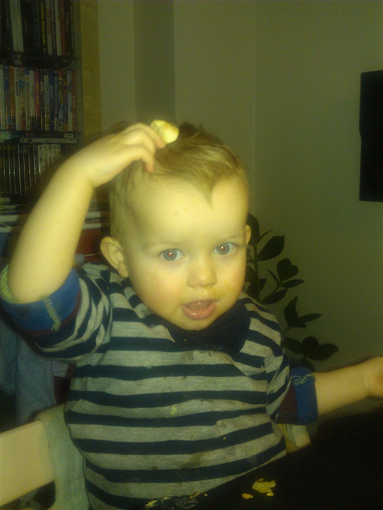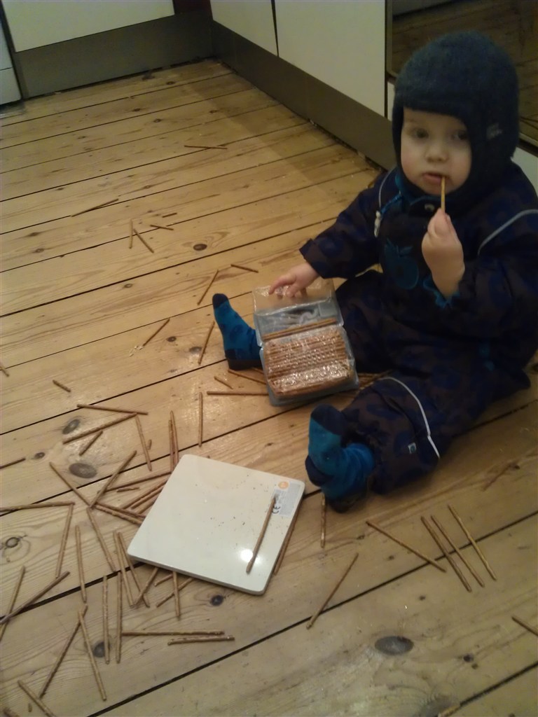 Det helt store pt er stableklodser, som han kan bruge lang tid på at stable og vælte. Og så roder han generelt bare som.... ja, sin far!
