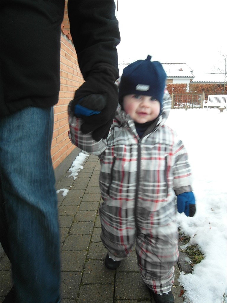 Så eeeelsker han sne! Det er lidt ærgerligt at vi ikke har mere af det, men mon ikke det nok skal nås!?